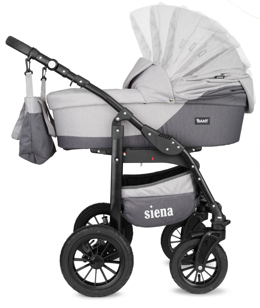 Основные особенности этой коляски Rant Siena включают жесткое дно и регулируемый капюшон в люльке, обеспечивающие защиту от солнца, ветра и дождя. Внутри люльки также есть мягкий матрасик для дополнительного комфорта ребенка. Прогулочный блок оснащен регулируемой спинкой и подножкой, что позволяет установить наиболее комфортное положение для ребенка.